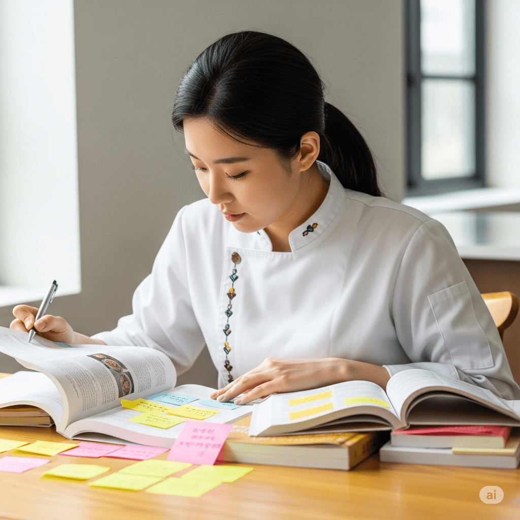 한식조리기능사 필기 시험의 효율적인 요점정리 공부법과 시험 과목을 알아보았습니다. 필기 시험을 준비하시는 분들이 위 정보를 통해 꾸준한 요약과 반복 학습으로 합격하시길 응원합니다!